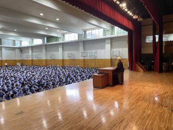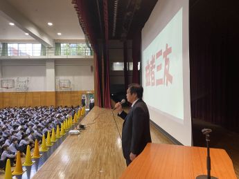 茂泉校長からは前期を振り返り、後期を迎えるにあたっての心構えや「益者三友」という孔子の「論語」にある言葉を紹介してもらい、自分の成長に役立つ友人の選び方、そして自分自身が仲間から選ばれる人になるための努力についてのお話をいただきました。