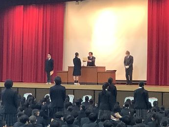 3月19日(木)に2025年度修了式・離任式を実施しました。まず初めに茂泉校長より、1年を振り返り、来年度に向けたお話をいただきました。その後に優等賞(成績優秀者)、皆勤賞、松前重義賞などの表彰を行いました。