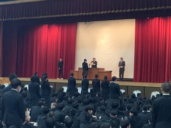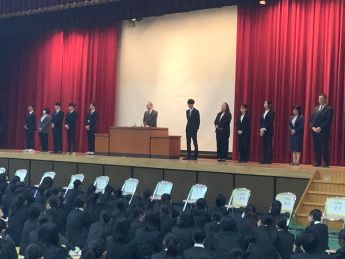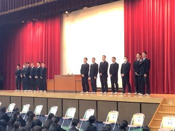 また、修了式のあとには全国大会に出場する高等学校柔道部と剣道部の壮行会が行われました。